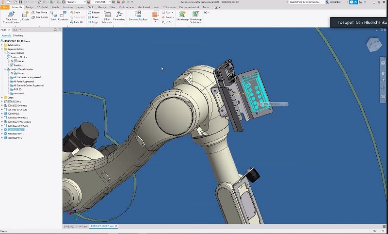 Фахівець навів основні аспекти проєктування технологічного обладнання, показав роботу в допоміжному програмному забезпеченні, дав поради по застосуванню функціоналу Autodesk Inventor.