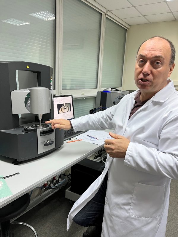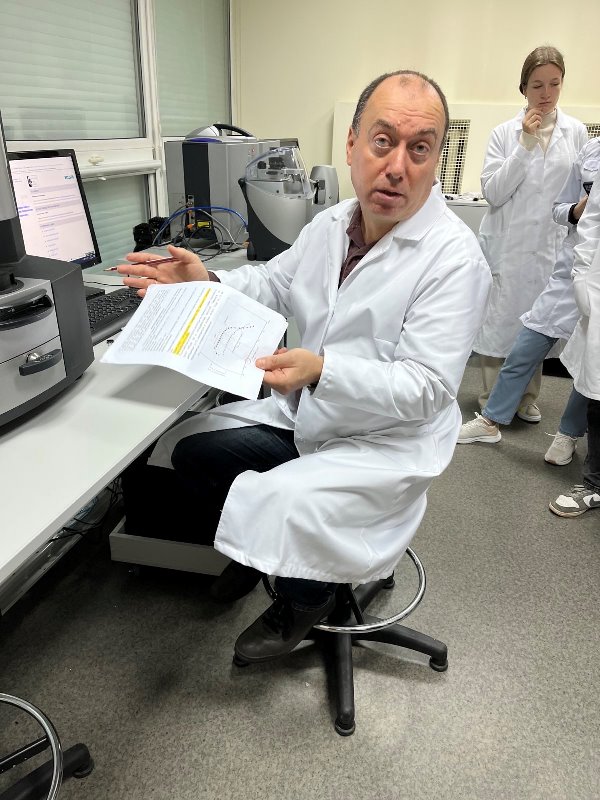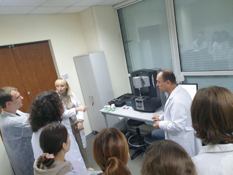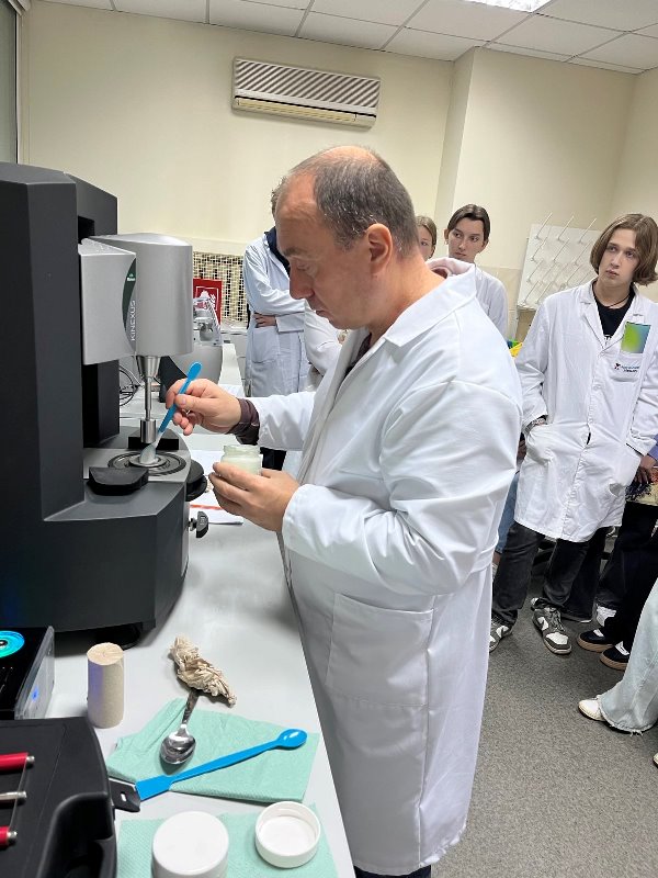 Завідувач Проблемної науково-дослідної лабораторії НУХТ, координатор Центру колективного користування науковим обладнанням НДЧ НУХТ, с.н.с., доцент, к.т.н. Андрій Маринін познайомив здобувачів із принципом роботи ротаційного реометра Kinexus, який належить до абсолютно нового покоління реометрів і розроблений британською компанією Malvern із урахуванням сучасних потреб світового ринку, поєднуючи інноваційний дизайн приладів із революційним програмним забезпеченням. Адаптивний інтелект, який лежить в основі Kinexus, дозволяє швидко та надійно визначати реологічні характеристики цілого спектру харчових, а також косметичних продуктів.