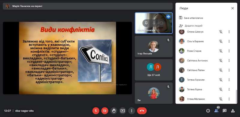 Конфліктам у освітньому середовищі: причинам виникнення, їх змісту та подоланню був присвячений виступ викладачки циклової комісії обладнання харчових виробництв Марії Панасюк.