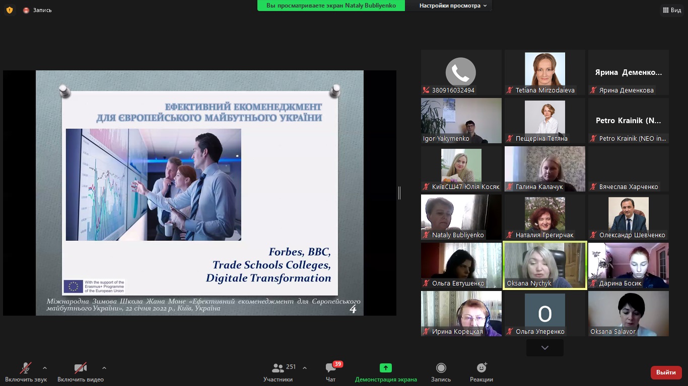 Перед слухачами виступили визнані експерти у галузі екоменеджменту та захисту довкілля з університетів Європейського Союзу та України, представники Програми академічних обмінів ЄС Еразмус+, фахівці екологічних компаній, учасники міжнародних проєктів екологічного спрямування.