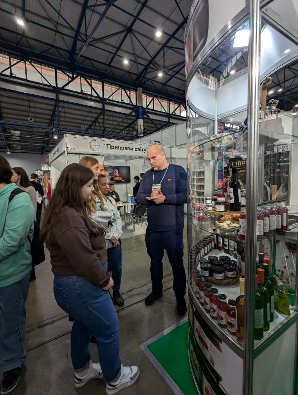 Доцентка кафедри технології оздоровчих продуктів Світлана Камінська разом зі здобувачами групи ОП-3-6 також відвідали виставку WorldFood Ukraine-2024. Подія зібрала провідних виробників у сфері харчування, тут були представлені інноваційні продукти – пастила, фріпси, комбуча, сиропи, фруктові та ягідні чаї, м'ясні снеки, хумус, соки, консервація овочева та плодово-ягідна, дитяче харчування, а також виробництво крафтових соусів, сирів, паштетів, рослинного молока, безалкогольних напоїв, рослинних харчових волокон і функціональних інгредієнтів та обладнання для харчових виробництв.