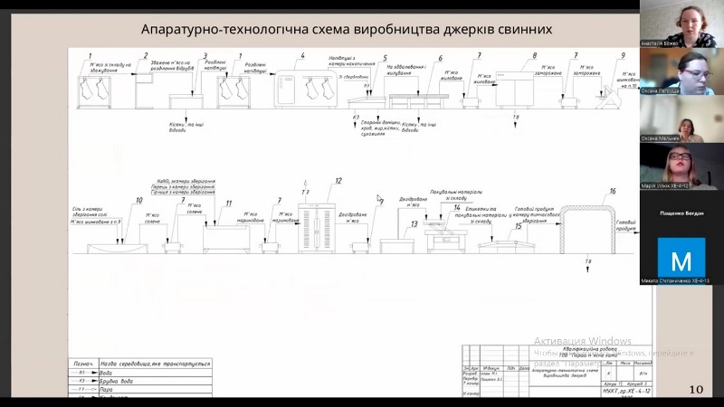 Цьогоріч на кафедрі експертизи харчових продуктів захисти кваліфікаційних робіт здобувачів освітнього ступеня «Бакалавр» спеціальності 181 «Харчові технології», освітньо-професійної програми «Технологічна експертиза та безпека харчової продукції» денної форми здобуття освіти розпочалися з доповіді Марії Дибченко англійською мовою. Здобувачка впевнено презентувала свою роботу та обґрунтовано відповідала на запитання членів комісії.