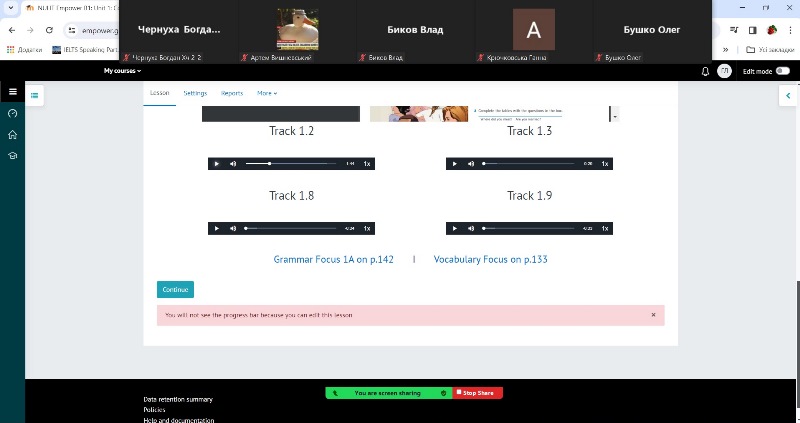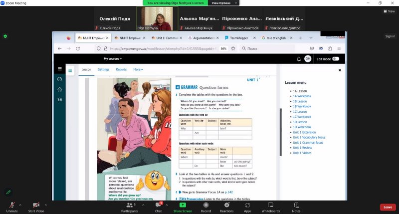 Доцентка Галина Лук’янець разом зі здобувачами-технологами групи ХЧ-2-2, які в четвертому семестрі мають об’ємний курс «Іноземна мова для академічного і професійного спілкування», інтегрували запропонований Кембриджським університетом навчальний матеріал до основної програми курсу. Здобувачі освіти мають чудову можливість тренувати навички аудіювання, слухаючи розміщенні на платформі записи; збільшувати свій словниковий запас, виконуючи тренувальні лексичні вправи; розвивати вміння діалогічного мовлення, обговорюючи запропоновані на курсі теми у ситуаціях комунікативної взаємодії.