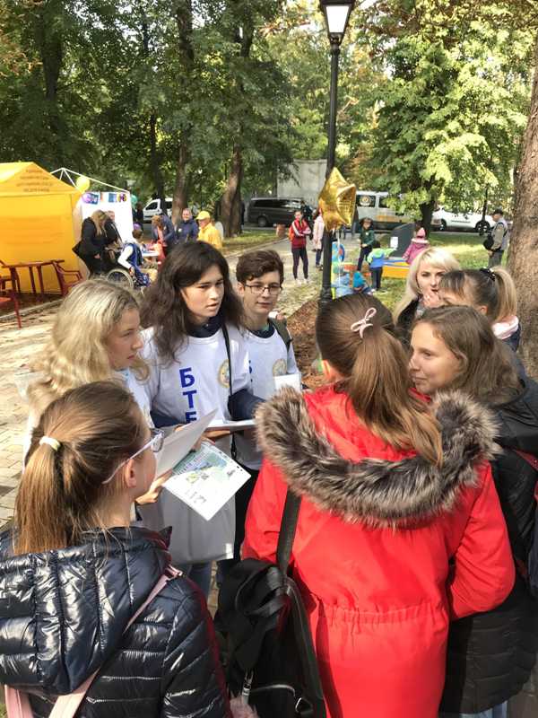 У рамках фестивалю також були презентовані послуги освіти державних і громадських закладів міста Києва для дітей та молоді. Наш університет представляли студенти факультету біотехнології та екологічного контролю Світлана Бондарук та Юля Лазюка (група БТ-4-1) і Вадим Кравченко (група БТ-1-3) під керівництвом доцента кафедри екологічної безпеки та охорони праці, відповідальної по факультету за профорієнтаційну роботу Наталії Володченкової.