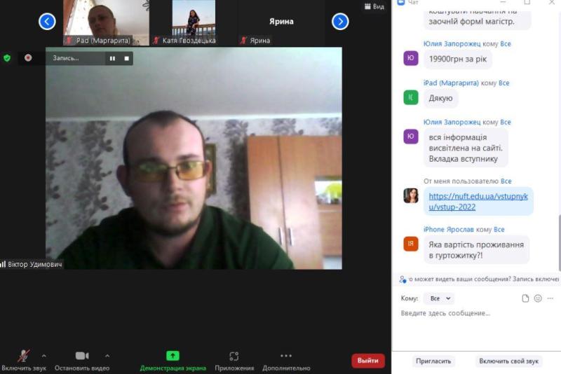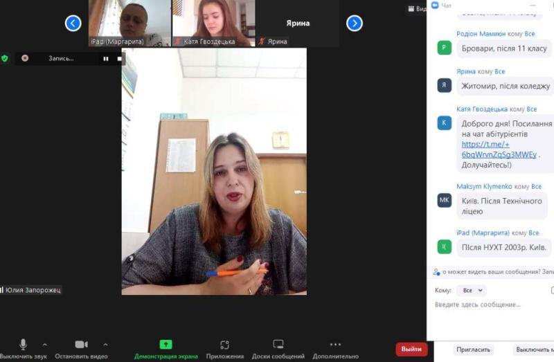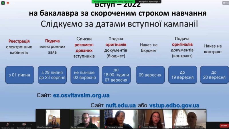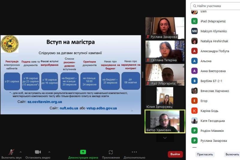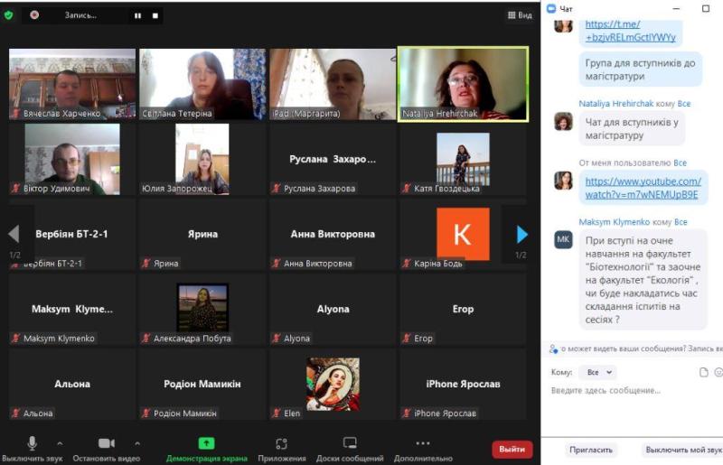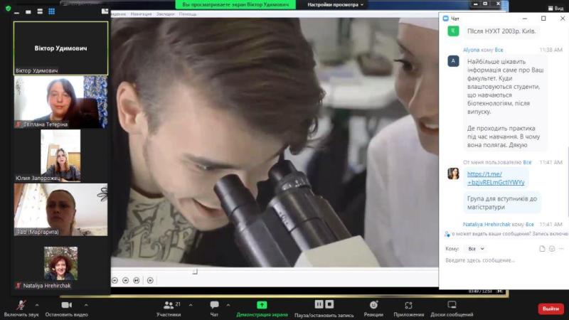 Під час зустрічі говорили багато про: важливість правильного вибору вищого навчального закладу; актуальність біотехнології та екології в сучасному світі; особливості вступу і навчання в НУХТ; перспективи працевлаштування, але головний посил усього заходу так і не був озвучений. Адже він і не потребує озвучення. Учасники ЗУМ-конференції його не почули, а відчули. І цей посил – відкритість НУХТ. Відкритість до всього нового, адже попри те, що університет існує вже більше століття, НУХТ іде в ногу з усіма сучасними тенденціями. Відкритість до іноземного досвіду. Відкритість до абітурієнтів врешті-решт. Тож попри пандемію ковіду, попри військове лихоліття і сирени повітряних тривог, НУХТ відповідально працює зі своїми майбутніми студентами, адже двері університету для них завжди ВІДКРИТІ! Так було, є і буде!