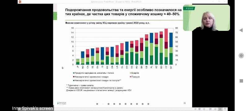 Здобувачі отримали інформацію щодо впливу воєнного вторгнення росії до України на світові товарні ринки, зокрема ринок чорних металів, зернових, олійних та енергоносіїв; дізналися про ситуацію на світових фінансових ринках крізь призму формування інвестиційних потоків; ознайомились із тенденціями зміни показників функціонування глобальної економіки в умовах інфляційного тиску та дії центральних банків у сьогоденних реаліях.
