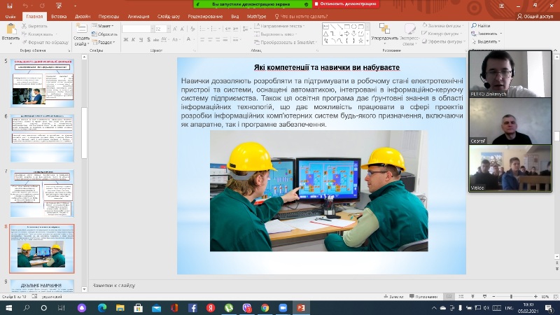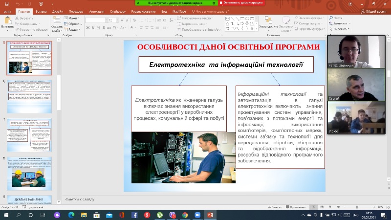 Під час бесіди зі студентами увага була зосереджена на особливостях вступної кампанії 2021 року, зокрема йшлося про сертифікати ЗНО, фахові вступні випробування, необхідні для вступу на основі диплома молодшого спеціаліста на спеціальність 141 «Електроенергетика, електротехніка та електромеханіка».