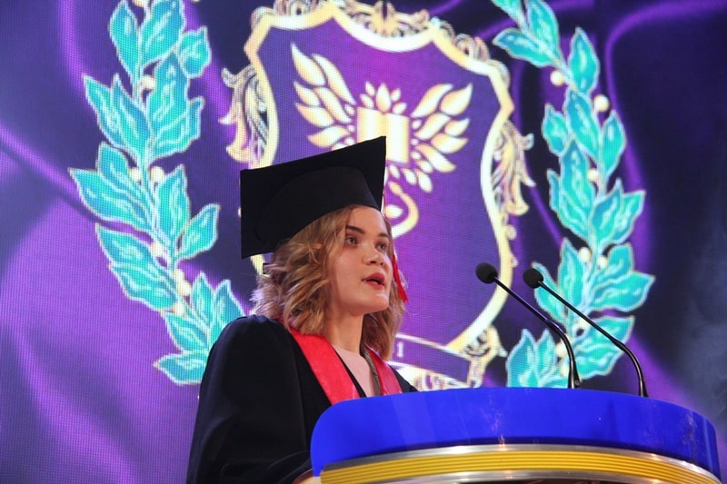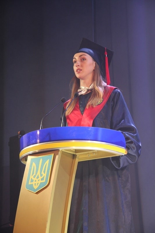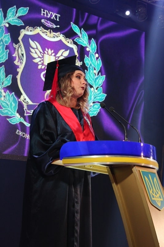 Від випускників сердечно подякували колективові інституту магістр з підприємництва Анастасія Черній, магістр з міжнародної економіки Світлана Титаренко, магістри з управління персоналом та економіки праці Олексій Штепенко і Дмитро Козловський, магістр з маркетингу Анастасія Долюк.