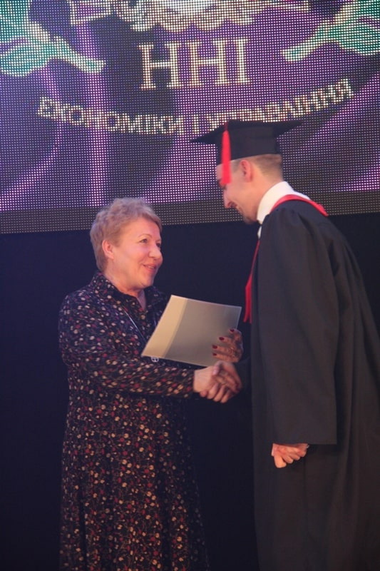 Разом зі щирими вітаннями останні настанови дали винуватцям свята завідувачі випускових кафедр – економіки і права Анатолій Заїнчковський, міжнародної економіки Світлана Гуткевич, економіки праці та менеджменту Тамара Березянко, фінансів Лада Шірінян, обліку і аудиту Леонід Чернелевський, маркетингу Ольга Пєтухова та вручили випускникам дипломи.
