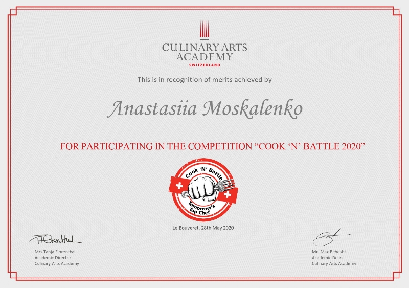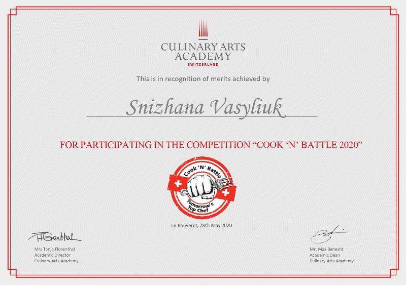 Кафедра готельно-ресторанної справи неймовірно пишається Альоною Васильчук, яка стала фіналісткою кулінарного конкурсу міжнародного рівня, а також висловлює подяку міжнародному партнеру, Швейцарській освітній групі (SEG) за можливість для наших студентів спробувати свої сили у такому змаганні.