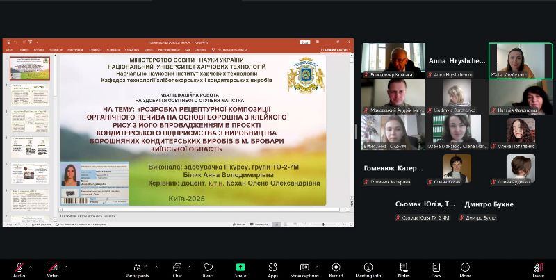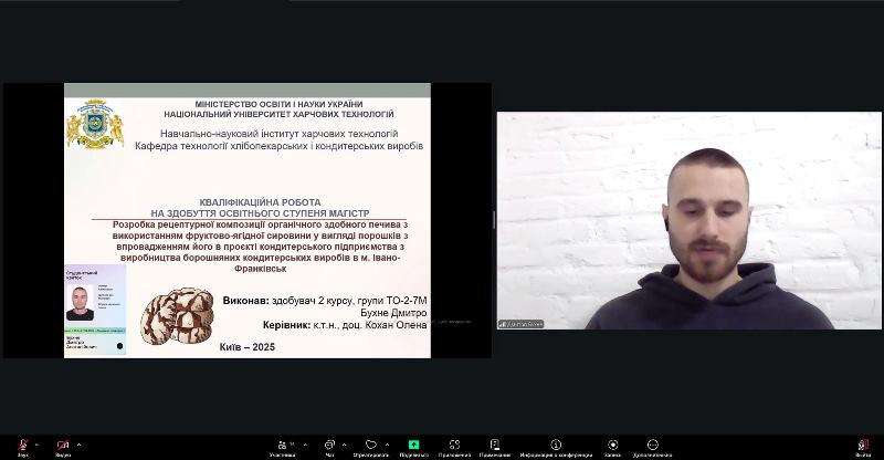 На кафедрі технології хлібопекарських і кондитерських виробів відбувся захист магістерських кваліфікаційних робіт здобувачами освітньо-професійної програми «Технології органічних харчових продуктів».