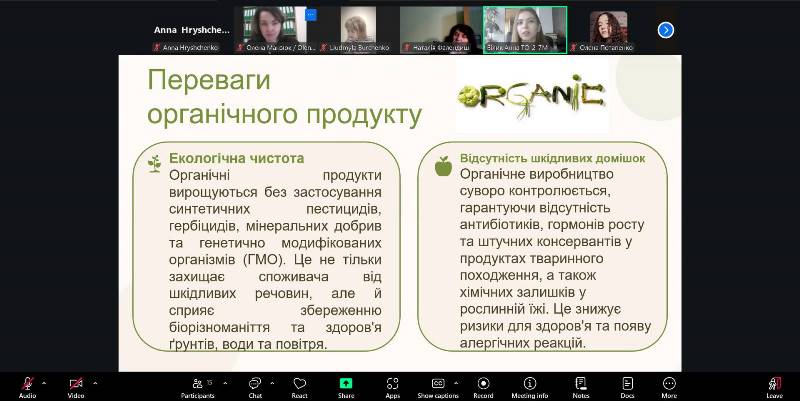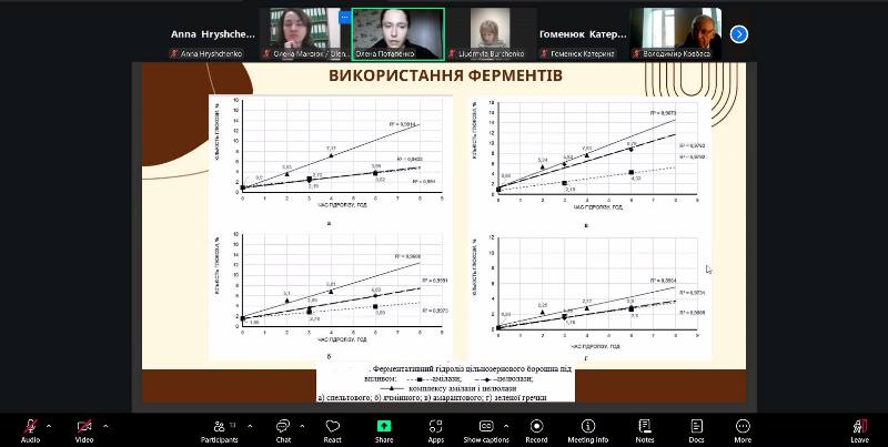 Здобувачі освіти представили результати досліджень щодо розроблення технологій різних видів органічного печива з цільнозернового борошна з додаванням продуктів перероблення грибів, порошків сушених фруктів та ягід, дієтичного печива з борошна клейкого рису, кнедликів тощо. Особлива увага приділялася відповідності якості сировини та технологій стандартам органічного виробництва, застосуванню технологічних режимів, які сприяють максимальному збереженню усіх цінних компонентів готового виробу.