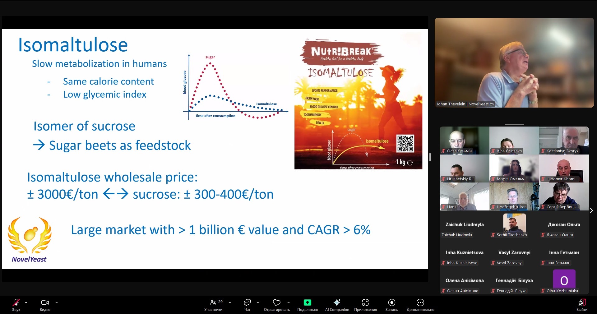 Йоган Тевелейн поділився досвідом розроблення функціональних інгредієнтів, що позитивно впливають на здоров’я людини, зокрема ізомальтулози та алулози – перспективних цукрів із низьким глікемічним індексом.