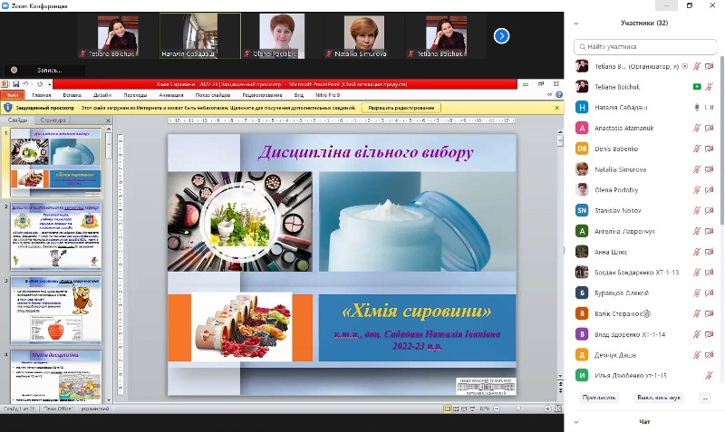 Питання організації вибіркових дисциплін було розглянуте гаранткою освітньої програми «Хімічна технологія» першого (бакалаврського) рівня освіти Оленою Подобій і членом робочої групи освітньої програми Тетяною Бойчук.