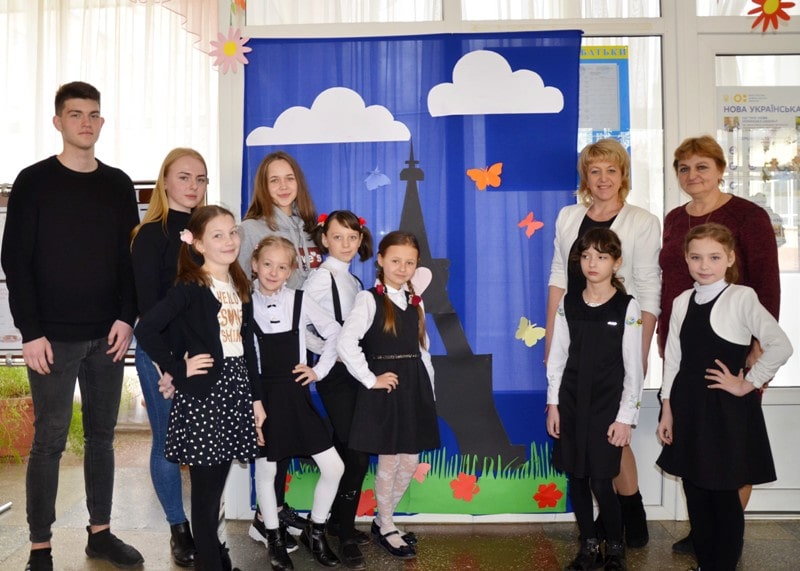 Тож викладачі кафедри разом зі студентами провели ці заходи. Поки учні 3-А класу знайомилися з Францією, учні 9-10 класів школи заочно знайомилися з НУХТ.