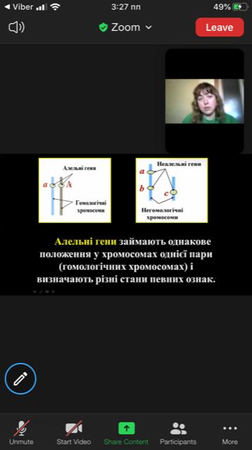 У студентів третього курсу спеціальності «Біотехнології та біоінженерія» у режимі відеоконференції на платформі Zoom відбулася лекція з дисципліни «Генетика».