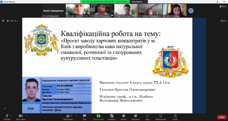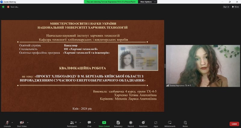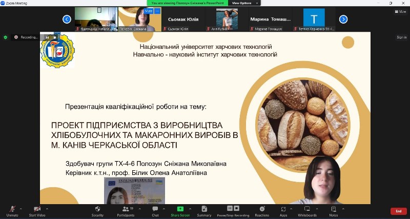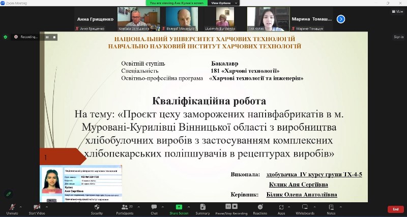 На кафедрі технології хлібопекарських і кондитерських виробів відбулися захисти кваліфікаційних робіт здобувачів денної форми здобуття освіти освітнього ступеня «Бакалавр» спеціальності 181 «Харчові технології».