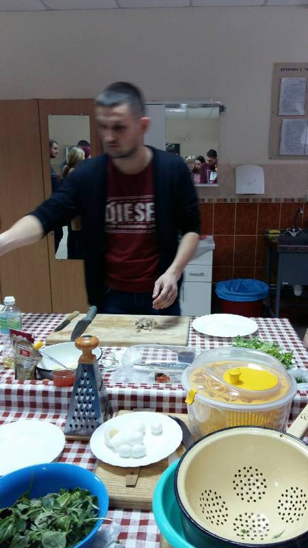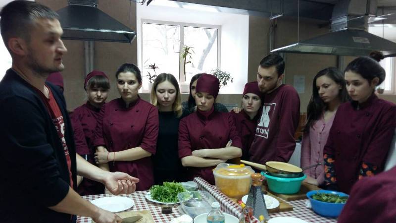Максим вирішив провести власний майстер-клас, адже сам колись працював у сфері ресторанного бізнесу. Він розповів студентам про те, як з невеликого набору сировини можна приготувати кілька доволі смачних страв. Прикладом стали салат «Весняний», тартар зі скумбрії та салат із скумбрією.