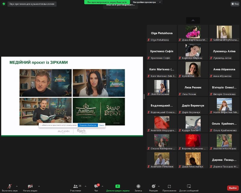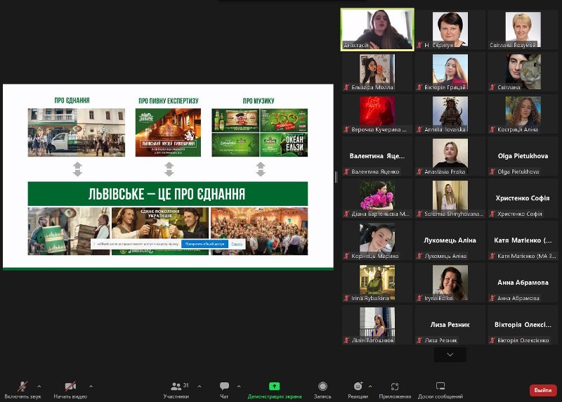 Відбулася онлайн-лекція менеджерки національної торговельної марки «Львівське» ПрАТ «Карлсберг Україна», лауреатки найавторитетнішої нагороди в галузі маркетингових комунікацій в Україні Effie Awards Анастасії Долюк.