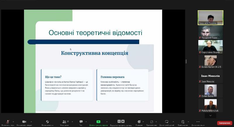 Лекторкою був представлений узагальнений підхід до дослідження напруженого стану балкових конструкцій. Лекція допомогла здобувачам освіти краще зрозуміти, як знання з курсу «Комп’ютерна математика» застосовуються у практичних задачах машинобудування та технічного проєктування.