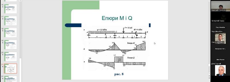 Днями у рамках лекційного заняття з дисципліни «Комп’ютерна математика» для здобувачів освітнього ступеня «Бакалавр», що навчаються за освітньо-професійними програмами «Прикладна механіка» (спеціальність 131 «Прикладна механіка»), «Інжиніринг харчових та біотехнологічних виробництв» (спеціальність 133 «Галузеве машинобудування») та «Комп’ютерні технології дизайну та виготовлення упаковки» (спеціальність 186 «Видавництво та поліграфія»), відбулася гостьова онлайн-лекція на тему «Дослідження напруженого стану складеної балки» від доцентки кафедри механіки Національного університету біоресурсів і природокористування України (НУБіП) Анастасії Куценко.