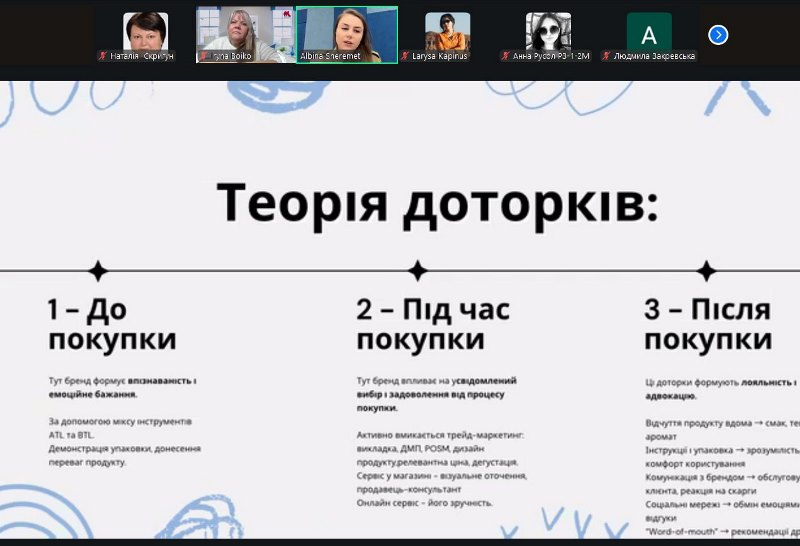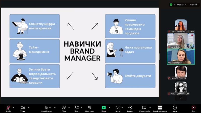 Такі зустрічі з практиками є важливою складовою освітнього процесу, адже дозволяють здобувачам освіти побачити реальні виклики професії, познайомитися з сучасними інструментами та підходами до управління брендами, а також сформувати розуміння того, які компетенції необхідні для успішної кар'єри у сфері маркетингу і бренд-менеджменту.
