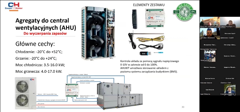 30 січня 2024 р. в рамках лекційних занять із дисциплін «Інженерні мережі та устаткування підприємств харчових виробництв» і «Складське господарство харчових виробництв» для здобувачів освітнього ступеня «магістр», що навчаються за освітньою програмою «Інжиніринг харчових виробництв», відбувся онлайн-лекторій від технічного директора компанії кліматичного обладнання ERKUL (м. Варшава, Польща) Ярослава Олішевського. Модераторами виступили доцент кафедри технологічного обладнання та комп’ютерних технологій проєктування Роман Якобчук і професор Валентин Олішевський. На зустрічі були також присутні викладачі кафедри.