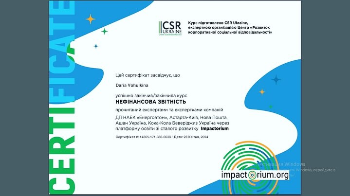 Онлайн-курс «Нефінансова звітність» від CSR Ukraine – цінний ресурс для тих, хто хоче навчитися готувати якісні та інформативні нефінансові звіти. Він надає практичні знання та навички, які можна використовувати для підготовки звітів, що відповідають міжнародним стандартам і потребам зацікавлених сторін.