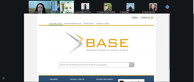 У ході зустрічі пані Інна розповіла про потужні фонди бібліотеки, репозитарій, можливості пошуку необхідної літератури через сайт бібліотеки, який функціонує як онлайн-платформа, що забезпечує доступ до електронних каталогів, цифрових фондів (книг, підручників, патентів, наукових статей, чинних стандартів, нормативних документів), дозволяє користувачам шукати літературу, замовляти науково-методичну літературу, книги, переглядати новини та отримувати інформаційні послуги в реальному часі. Значну увагу було приділено методології пошуку наукових публікацій у міжнародних наукометричних базах і роз’ясненням чинного стандарту ДСТУ 8302:2015 «Інформація та документація. Бібліографічне посилання. Загальні вимоги та правила складання».
