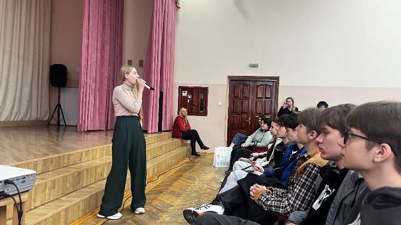 Зустріч розпочалася з перегляду відео про НУХТ і розмови з представницею студентства Діаною Бондаренко, яка розповіла про студентське життя в університеті та відповіла на запитання ліцеїстів.