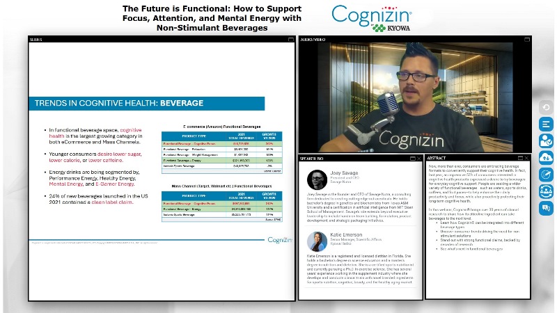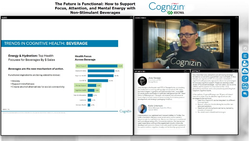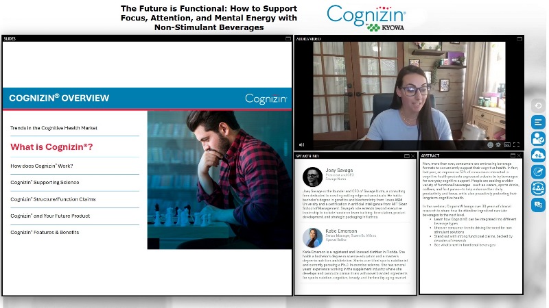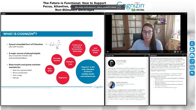Під час вебінару обговорювалися сучасні тенденції споживчого попиту, зокрема зростаючий інтерес до щоденних напоїв як зручного формату для підтримки фокусування й продуктивності; прагнення споживачів до природних, безпечних альтернатив стимуляторам; можливості інтеграції інгредієнта «Cognizin» у різні види напоїв – від води й соків до спортивних напоїв і кави; важливість формування сильних функціональних тверджень, що ґрунтуються на науковій доказовій базі.