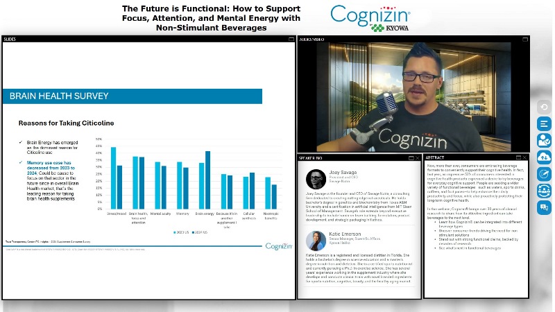 Спікерами заходу виступили ключові експерти індустрії функціональних інгредієнтів – президент компанії «Savage Nutra» Джої Севідж і старша менеджерка наукового відділу «Kyowa Hakko» Кеті Емерсон. Вони представили результати понад 30-річних клінічних досліджень, що демонструють ефективність цитиколіну як активного компонента для підтримки когнітивного здоров’я.