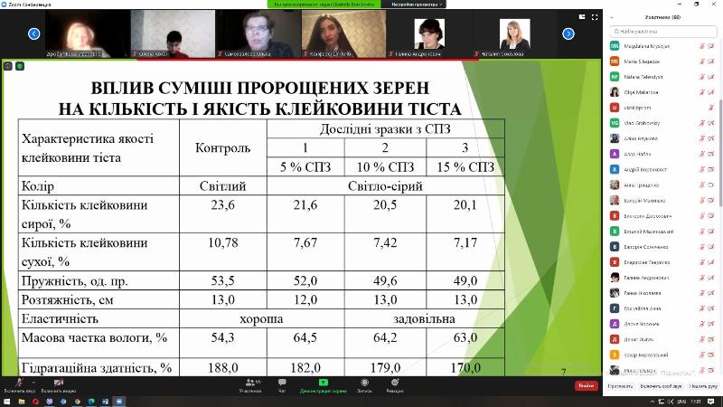 До конференції також приєдналися здобувачі, які навчаються за освітньо-професійними програмами «Технології хліба, кондитерських, макаронних виробів та харчоконцентратів» і «Технології органічних харчових продуктів».