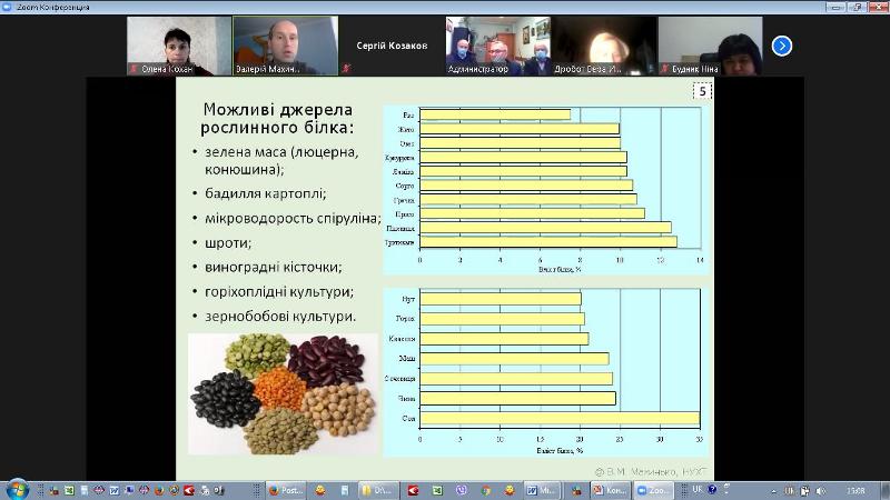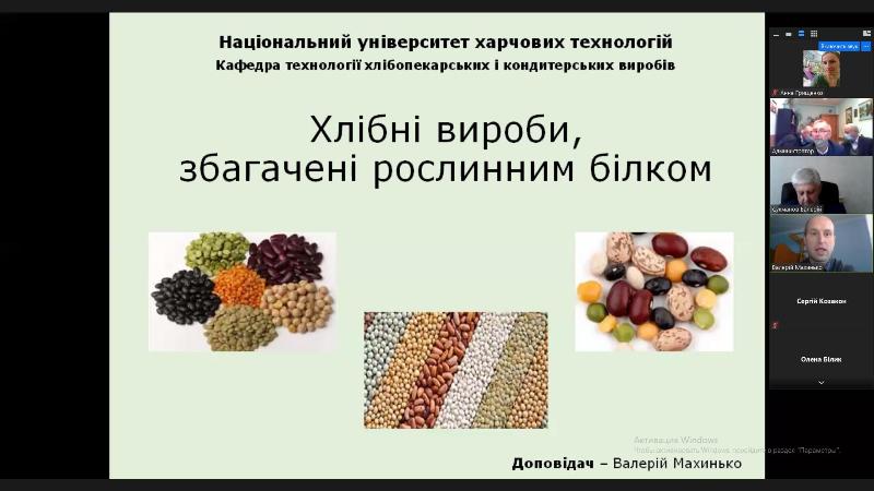 У доповіді професорки кафедри технології хлібопекарських і кондитерських виробів Віри Дробот були представлені результати наукових напрацювань колективу кафедри щодо підвищення харчової цінності хлібобулочних виробів. У цьому ж напрямі, щодо використання рослинних білків у хлібопеченні, представив розширену доповідь професор Валерій Махинько.