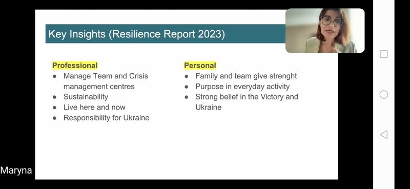 Здобувачі освіти дізналися про: особливості сталого розвитку під час війни; розвиток соціальної відповідальності на прикладах кейсів українських компаній; 5-компонентну модель сталого розвитку в умовах війни, розроблену CSR Ukraine; лідерську програму для молоді від CSR Ukraine.