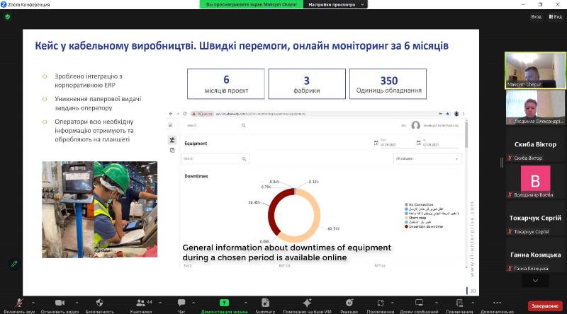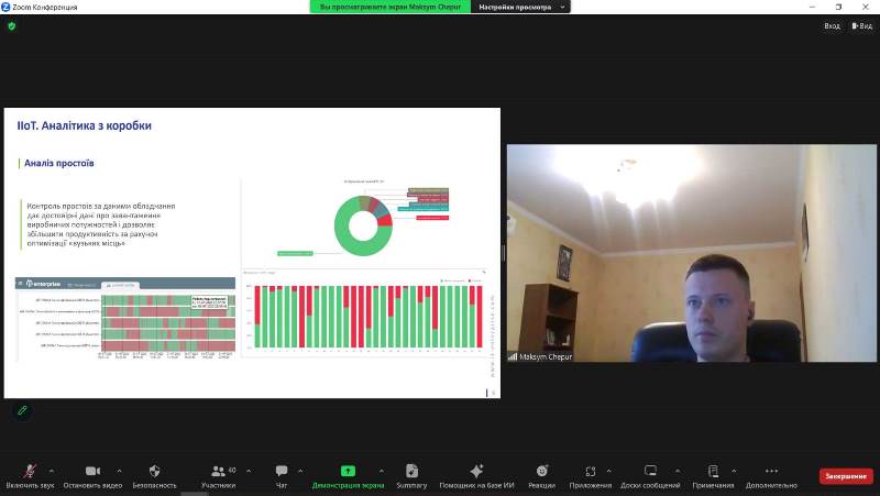 Лектор навів результати впровадження системи по опрацюванню зібраних даних. Були проаналізовані підходи до підключення пристроїв ІIoT для збору даних за допомогою датчиків і спеціально розроблених програм.