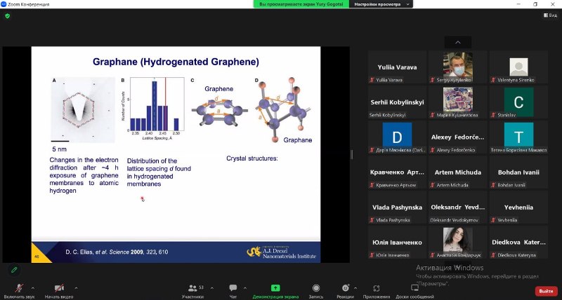 Лекція була присвячена синтезу та подальшому застосуванню графену у різноманітних галузях. Цей новітній матеріал був відкритий у 2004 році, і зараз він набуває все більшої популярності у найрізноманітніших галузях. Лише протягом останніх кількох років були опубліковані десятки тисяч наукових праць, присвячених дослідженням графену, його властивостей і пошуку нових способів застосування матеріалу.