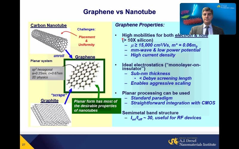 Унікальність графена також у тому, що він має таку ж структуру, як і напівпровідники, при цьому він сам проводить електрику як провідники. А ще має високу рухливість носіїв заряду всередині матеріалу. Тому графен при широкому використанні у фото- та відеотехніці виявляє сигнали набагато швидше, ніж інші матеріали.