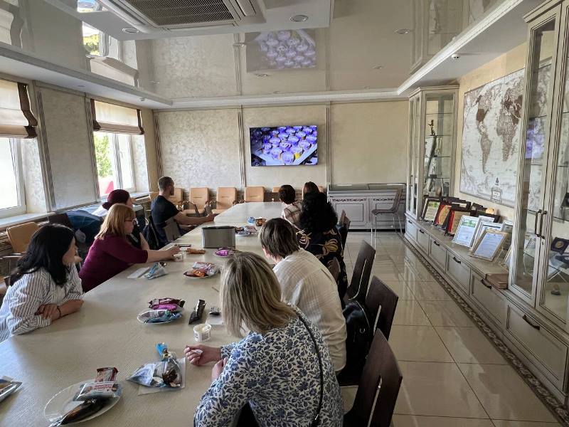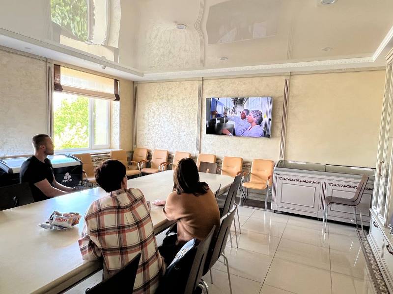 На підприємстві здобувачів освіти зустріла директорка з якості Лариса Жигадло. Вона турботливо розмістила всіх у сучасній дегустаційній залі, де гості змогли насолодитися смачним морозивом і в атмосфері невимушеного спілкування дізнатися більше про історію підприємства, його внутрішню структуру та розвиток компанії до рівня потужного лідера галузі. Лариса Жигадло, випускниця нашого університету, присвятила все своє професійне життя розвитку компанії. Вона ознайомила магістрантів і викладачів із особливостями організації та дотримання принципів органічного виробництва морозива, розповіла про технологічні можливості ліній та обладнання, організацію контролю сировини, напівфабрикатів і готової продукції. З гордістю провела екскурсію виробничими та складськими приміщеннями, зупиняючись на впровадженні міжнародних систем менеджменту.
