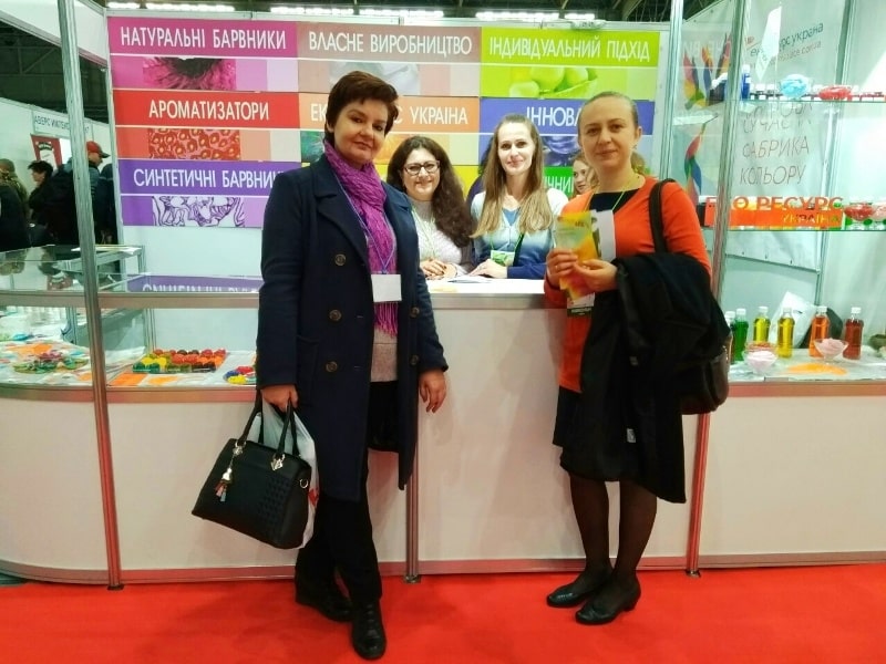 На таких заходах, окрім ознайомлення з цікавинками галузі та налагодження контактів із виробничниками, надзвичайно приємно зустрічати випускників НУХТ різних років. Не стала винятком і цьогорічна виставка, адже доцент Наталія Стеценко та асистент Тетяна Федоренко мали приємну нагоду поспілкуватися з випускницею освітньої програми «Технології харчових продуктів оздоровчого та профілактичного призначення» Ольгою Полевик, яка працює менеджером-технологом компанії «Екоресурс Україна», що спеціалізується на виробництві барвників.