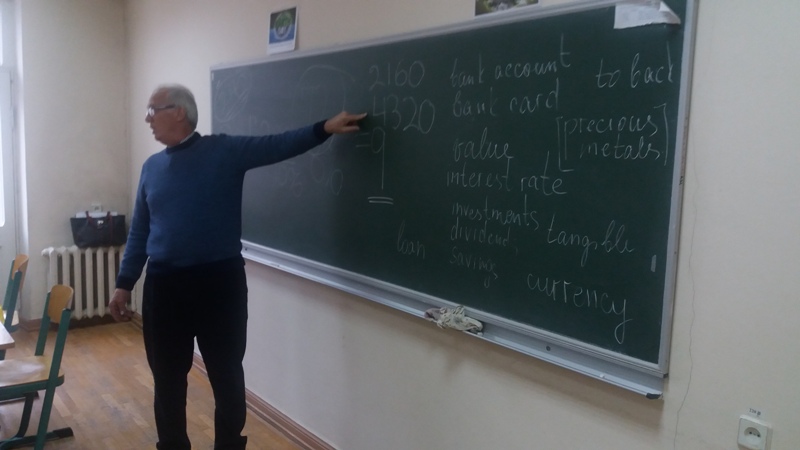 15 березня 2018 року відбулося практичне заняття «Money and its functions» для студентів першого курсу спеціальності «Маркетинг». Розпочалося воно зі знайомства. Гість говорив про своє рідне місто, студентські роки, а також розповів, чому вирішив приїхати до України. Такий щирий початок зацікавив студентів, і вони задавали багато запитань про американські реалії та відмінності від України. Поступово викладач звертав увагу студентів на ставлення до грошей у Сполучених Штатах, розповівши, як американці заощаджують кошти, і навіть зобразивши це схематично на дошці.