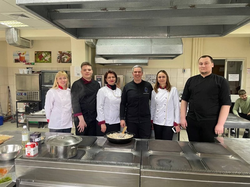 Освітній івент відбувся у теплій та дружній атмосфері, де кожний учасник мав можливість не лише спостерігати за технологічним процесом, а й активно долучитися до приготування страви. Магістранти отримали унікальну можливість перейняти досвід від топового шеф-кухаря, дізнатися про кулінарні тренди та особливості роботи в ресторанному бізнесі.