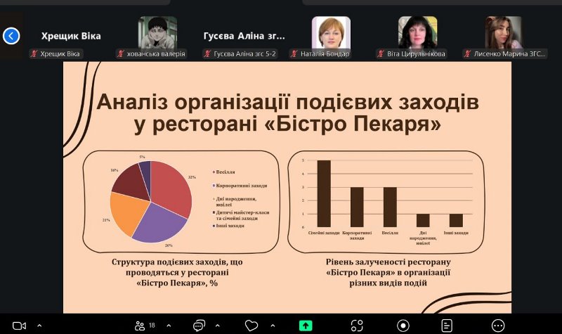 Оцінювала рівень загальних і фахових компетентностей випускників екзаменаційна комісія у складі деканки факультету готельно-ресторанного та туристичного бізнесу імені проф. В.Ф. Доценка Віти Цирульнікової, завідувачки кафедри готельно-ресторанної справи Лариси Шаран, викладачок кафедри, доценток Ольги Пушки та Оксани Кирпіченкової.