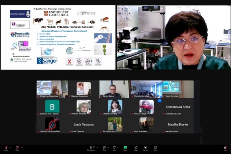 Днями здобувачі спеціальності 162 «Біотехнології та біоінженерія» освітніх ступенів «бакалавр», «магістр», освітньо-наукового ступеня «доктор філософії» та викладачі кафедри біотехнології і мікробіології мали унікальну нагоду віртуально відвідати один із провідних світових наукових центрів і зануритися у світ передових генетичних технологій. Із надзвичайно цікавою гостьовою лекцією на тему «Біологічні ножиці CRISPR-Cas9. Реконструкція генома і сила контрольованої еволюції» виступила докторка сільськогосподарських наук Алла Мадіч, головна наукова асистентка та старша трансгенна технологиня Департаменту генетики Кембриджського університету (Велика Британія).