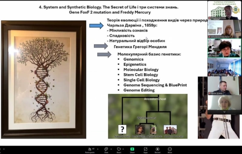 Лекторка розпочала доповідь, віддавши шану своєму вчителю, професору Степану Шаловилу, засновнику репродуктивної біотехнології в Україні, підкресливши важливість спадкоємності у науці. Далі фахівчиня майстерно провела слухачів від фундаментальних концепцій еволюції Дарвіна та генетики Менделя, через історичне відкриття подвійної спіралі ДНК Уотсоном і Кріком у Кембриджі (місці, де паб «The Eagle» досі зберігає пам'ять про цю подію), до сучасних проривів у геноміці та епігенетиці.