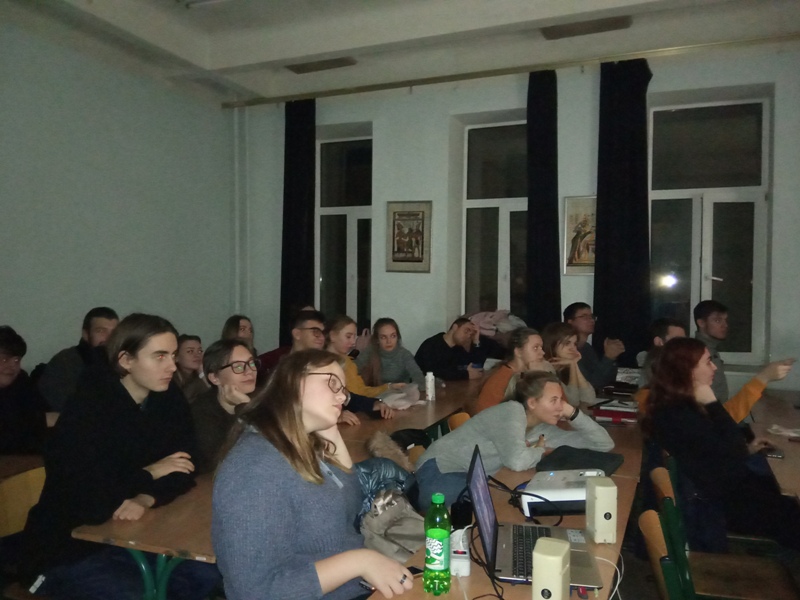 Після перегляду фільму використовувалися різноманітні наочні матеріали з тренувальними вправами, відбулися обговорення, спрямовані на розвиток професійної комунікативної компетенції студентів та аспірантів.