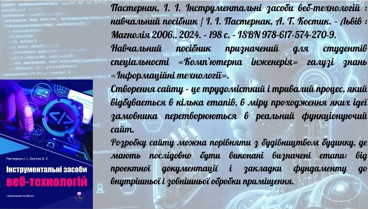 Науково-технічна бібліотека університету пропонує ознайомитися з навчальною літературою, що надійшла до фондів на замовлення кафедри інформаційних технологій, штучного інтелекту та кібербезпеки.