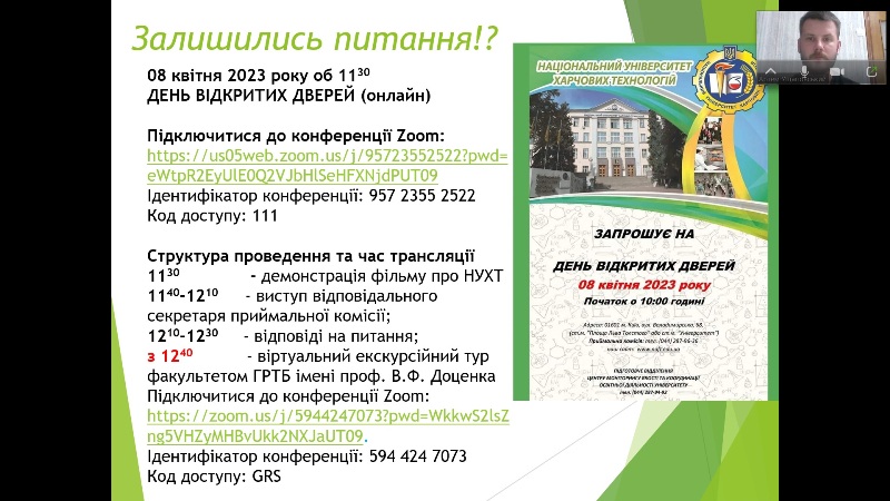 Доцентка кафедри Ірина Дітріх разом із Артемом Ущаповським провели онлайн-зустріч із учнями Криворізької гімназії №121 та запросили учасників профорієнтаційного івенту відвідати онлайн-частину Дня відкритих дверей.