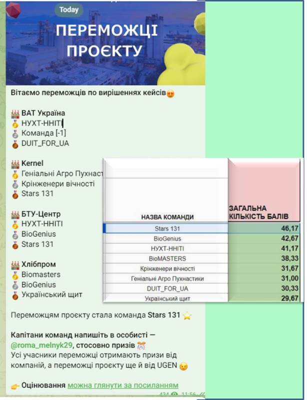 Окремо здобуті перемоги – треті місця за розв’язання кейсів компаній Kernel і БТУ-Центр надали наснаги у крокуванні команди STARS 131 до позиції лідера у командному заліку!