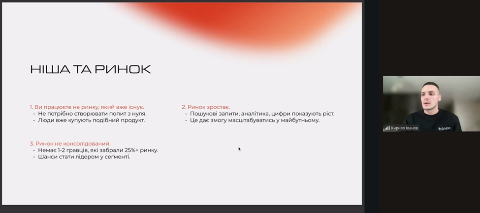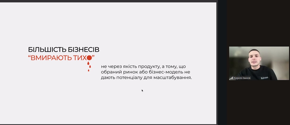 Основна теза лекції – «Більшість бізнесів вмирають тихо – не через якість продукту, а через неправильний вибір ринку або бізнес-моделі».